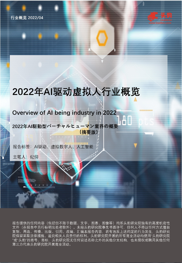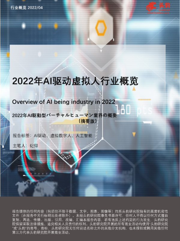 【头豹研究院】【20220517】2022年AI驱动虚拟人行业概览-26页