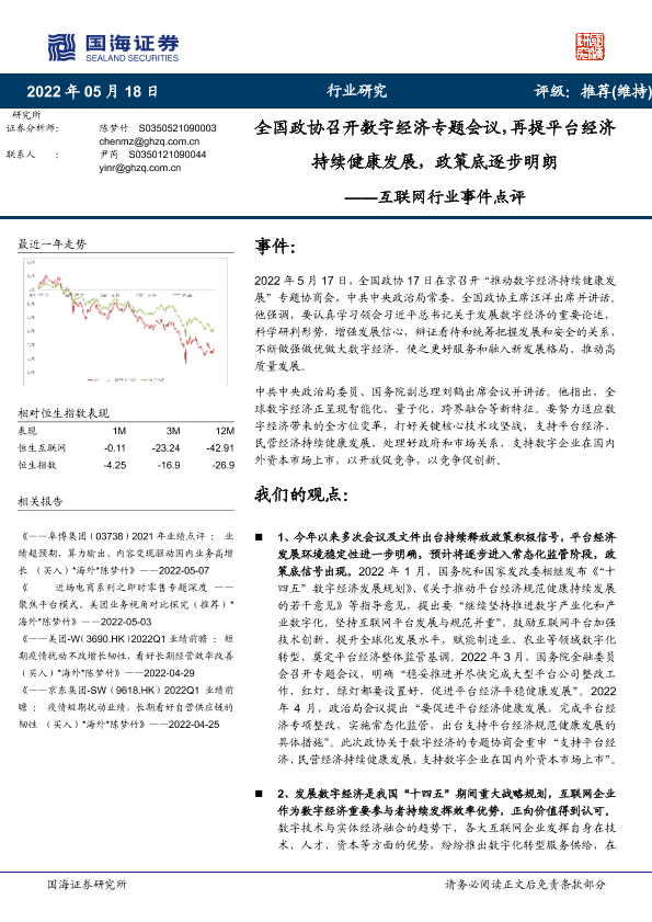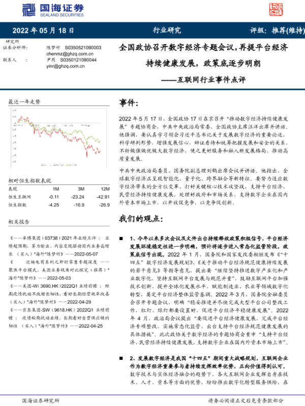 【国海证券】【20220518】全国政协召开数字经济专题会议,再提平台经济持续健康发展,政策底逐步明朗-4页