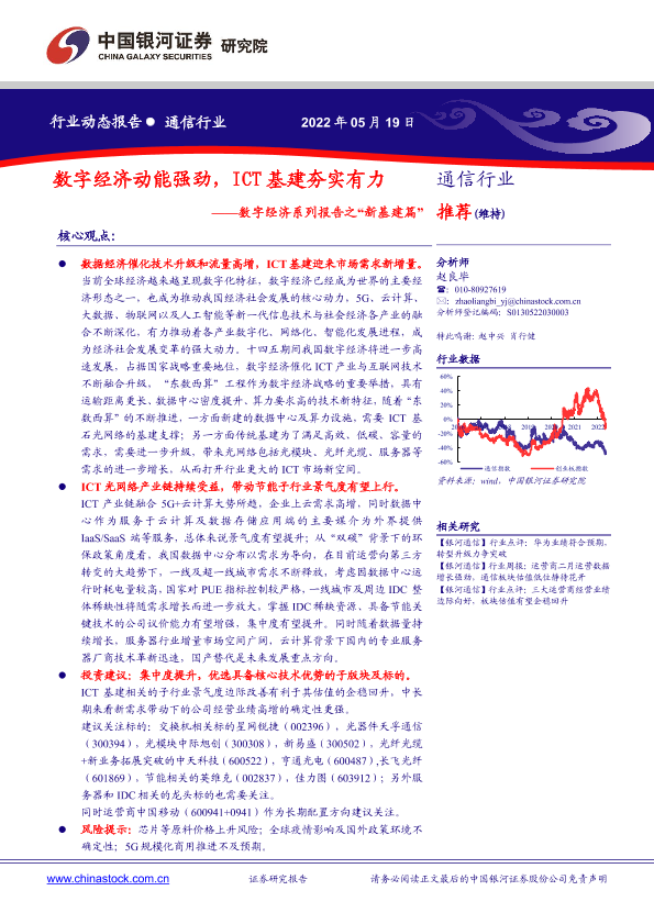 【银河证券】【20220519】20220519-中国银河-通信行业动态报告:数字经济系列报告之“新基建篇”-数字经济动能强劲,ICT基建夯实有力-14页