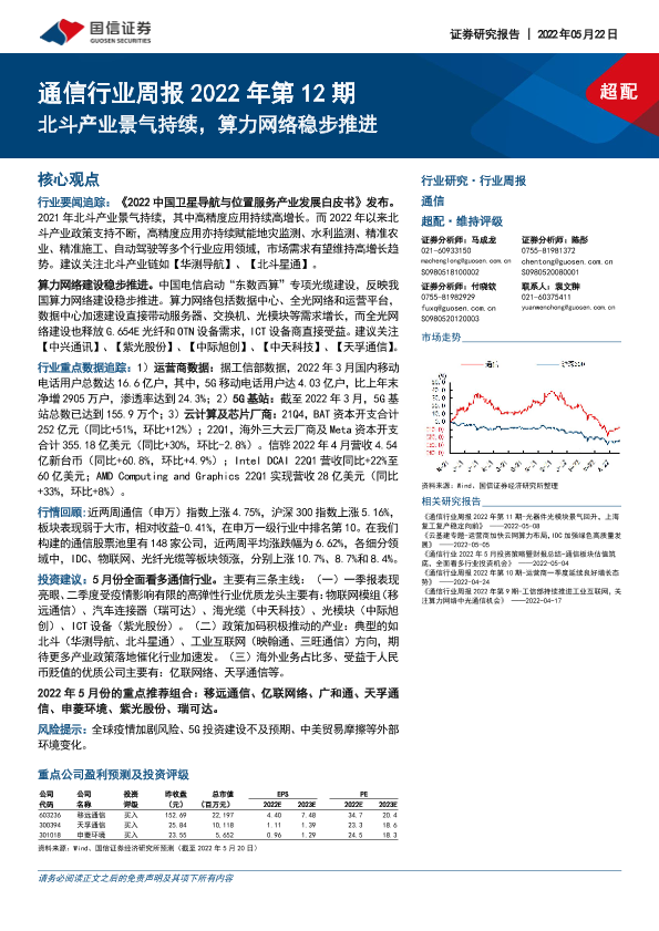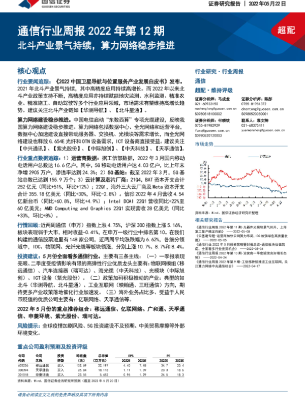 【国信证券】【20220522】通信行业周报2022年第12期:北斗产业景气持续,算力网络稳步推进-31页