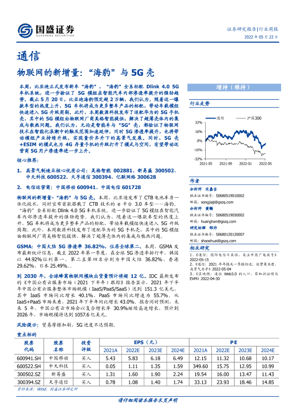 【国盛证券】【20220522】通信行业周报:物联网的新增量:“海豹”与5G壳-14页