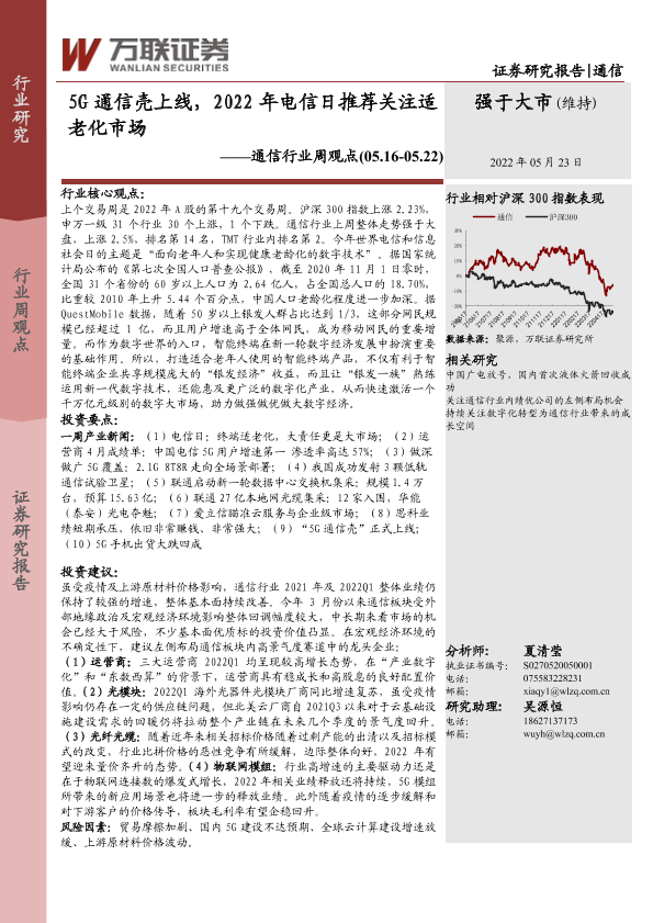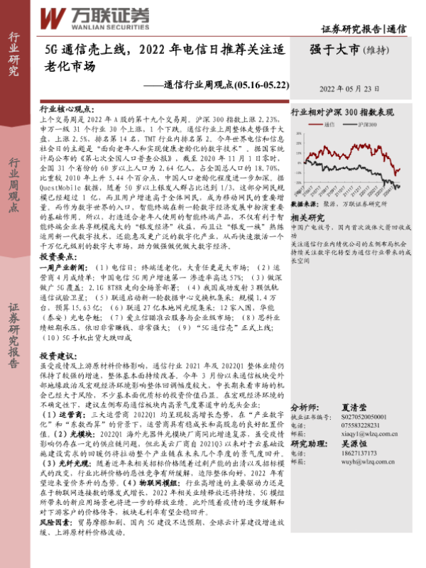【万联证券】【20220523】20220523-万联证券-通信行业周观点:5G通信壳上线,2022年电信日推荐关注适老化市场-12页