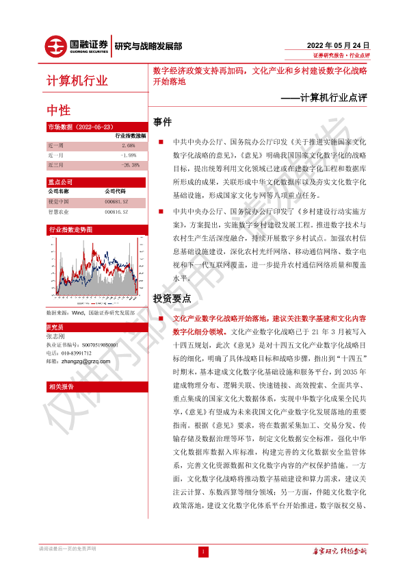 【国融证券】【20220524】计算机行业点评:数字经济政策支持再加码,文化产业和乡村建设数字化战略开始落地-3页