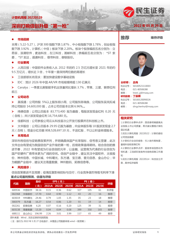 【民生证券】【20220529】计算机周报:深圳打响信创升级“第一枪”-17页