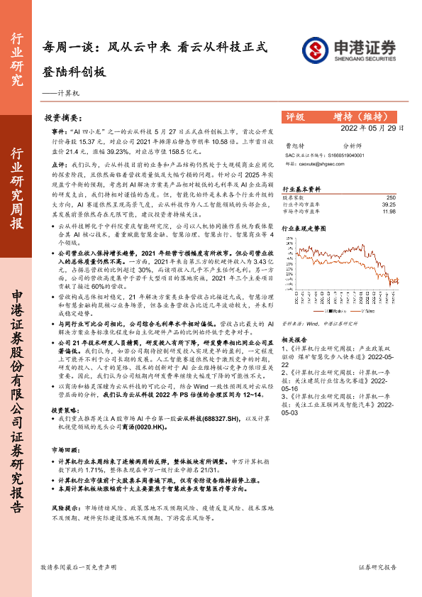 【申港证券】【20220529】每周一谈:风从云中来看云从科技正式登陆科创板——计算机-12页