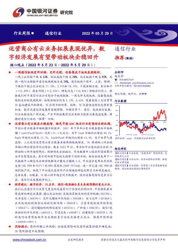 【银河证券】【20220529】通信行业周报:运营商公有云业务拓展表现优异,数字经济发展有望带动板块企稳回升-16页