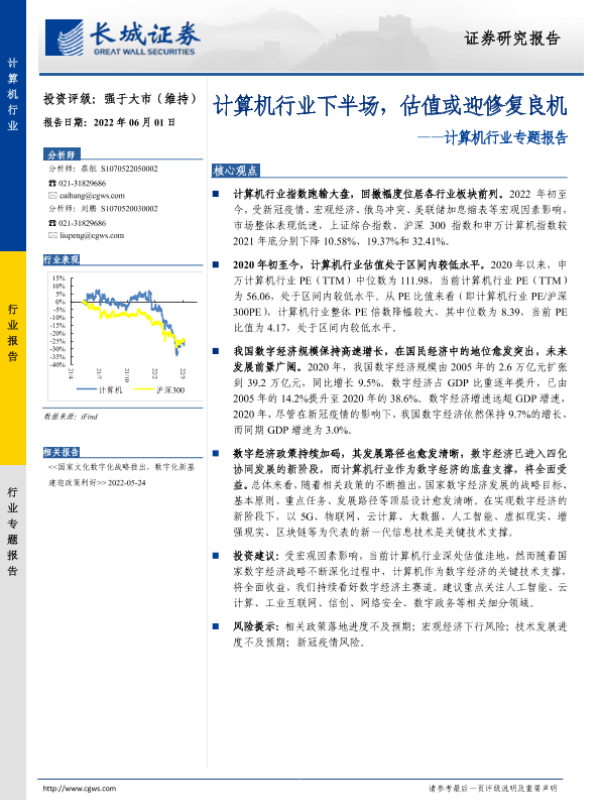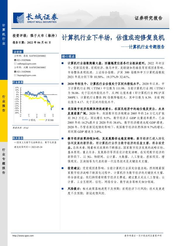 【长城证券】【20220601】计算机行业下半场,估值或迎修复良机-10页