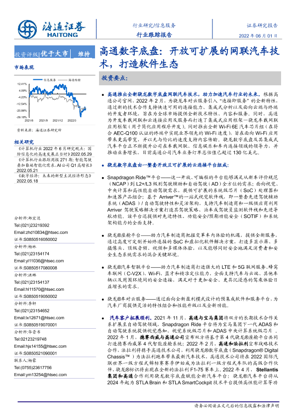 【海通证券】【20220601】信息服务行业跟踪报告:高通数字底盘:开放可扩展的网联汽车技术,打造软件生态-3页