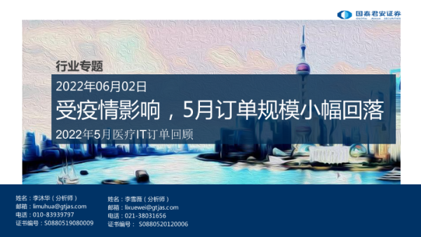 【国泰君安证券】【20220602】2022年5月医疗IT订单回顾:受疫情影响,5月订单规模小幅回落-10页
