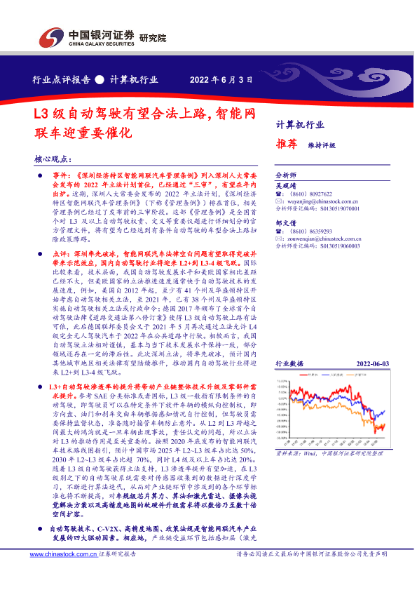 【银河证券】【20220603】计算机行业:L3级自动驾驶有望合法上路,智能网联车迎重要催化-3页