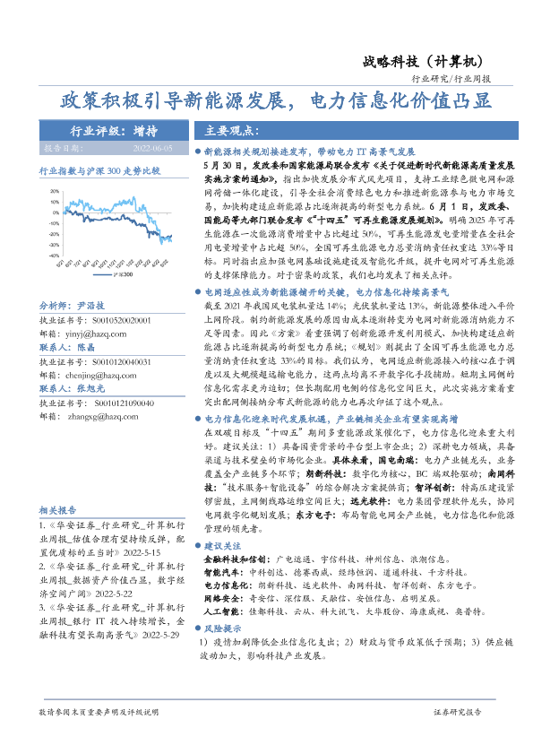 【华安证券】【20220605】20220605-华安证券-战略科技(计算机)行业周报:政策积极引导新能源发展,电力信息化价值凸显-15页