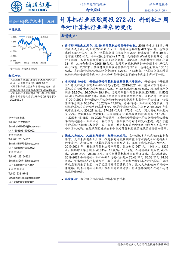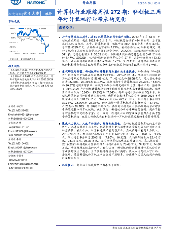 【海通证券】【20220605】20220605-海通证券-计算机行业跟踪周报272期:科创板三周年对计算机行业带来的变化-4页