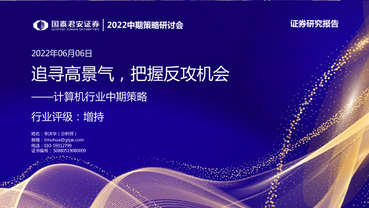 【国泰君安证券】【20220606】20220606-国泰君安-计算机行业中期策略:寻找高景气,把握反攻机会-40页