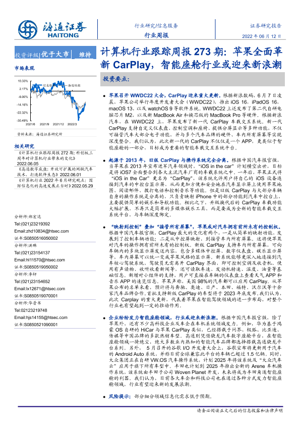【海通证券】【20220612】计算机行业跟踪周报273期:苹果全面革新CarPlay,智能座舱行业或迎来新浪潮-2页