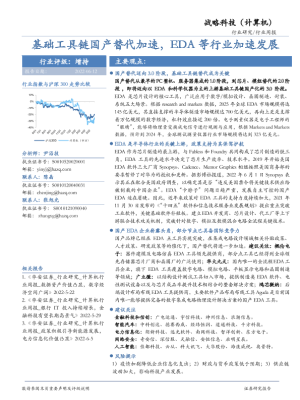 【华安证券】【20220612】20220612-华安证券-战略科技(计算机)行业周报:基础工具链国产替代加速,EDA等行业加速发展-15页