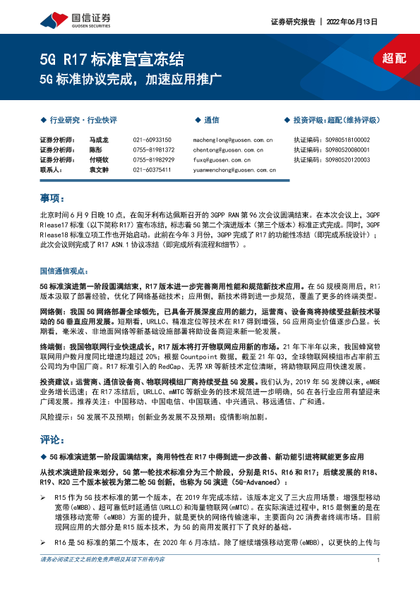 【国信证券】【20220613】5G R17标准官宣冻结-5G标准协议完成,加速应用推广-12页