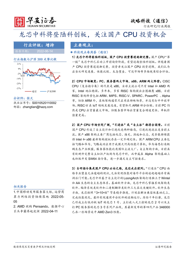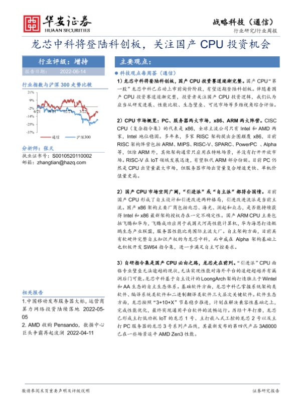 【华安证券】【20220614】20220614-华安证券-战略科技(通信)行业周报:龙芯中科将登陆科创板,关注国产CPU投资机会-22页