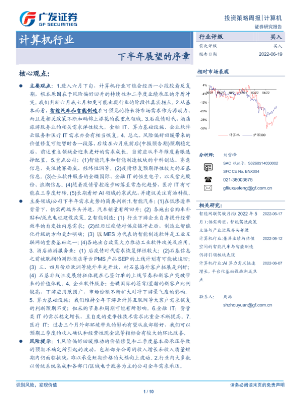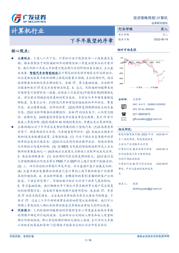 【广发证券】【20220619】20220619-广发证券-计算机行业投资策略周报:下半年展望的序章-10页