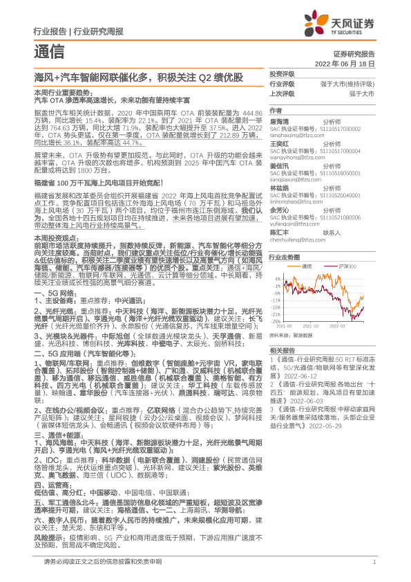 【天风证券】【20220618】通信行业研究周报:海风+汽车智能网联催化多,积极关注Q2绩优股-12页