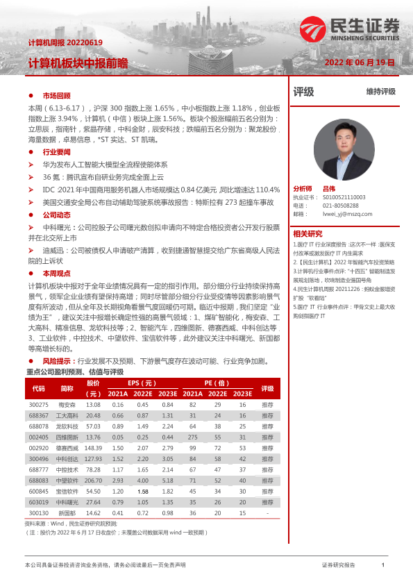 【民生证券】【20220619】计算机周报:计算机板块中报前瞻-17页