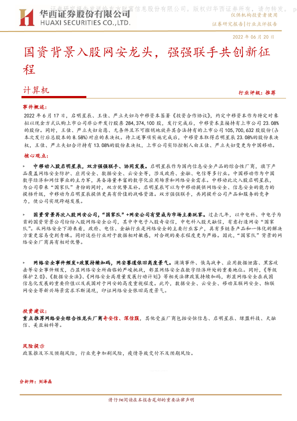 【华西证券】【20220620】国资背景入股网安龙头,强强联手共创新征程-4页