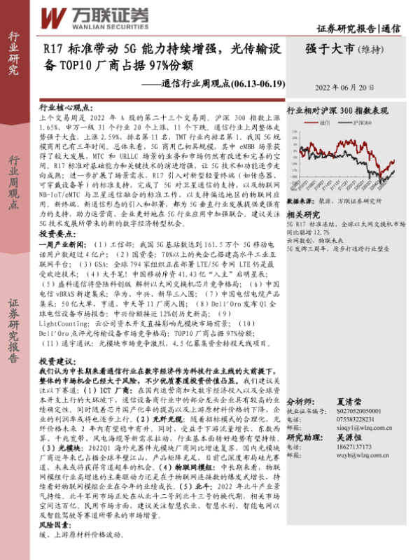 【万联证券】【20220620】R17标准带动5G能力持续增强,光传输设备TOP10厂商占据97%份额-13页