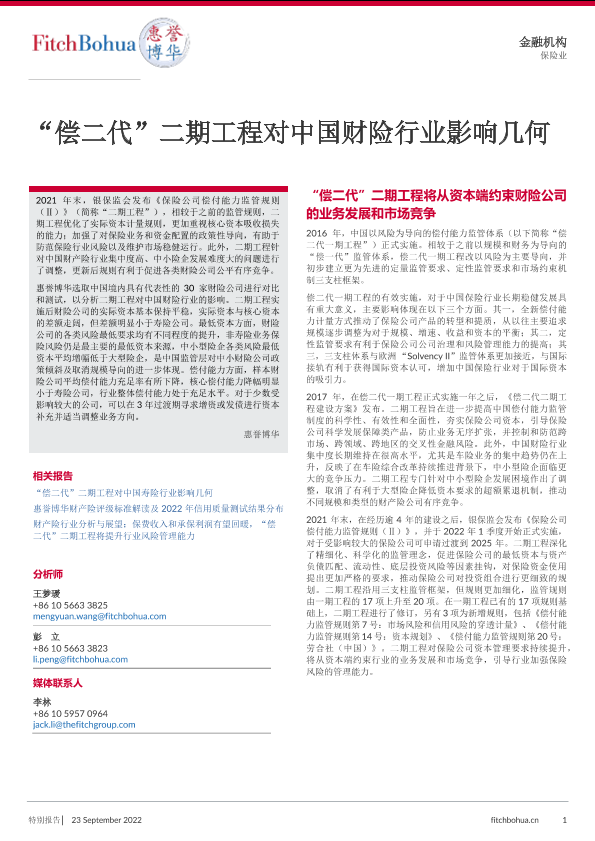 【惠誉博华】【20220923】“偿二代”二期工程对中国财险行业影响几何-5页