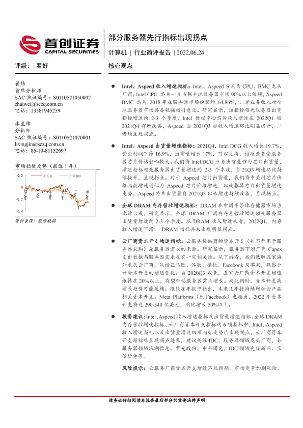 【首创证券】【20220624】20220624-首创证券-计算机行业简评报告:部分服务器先行指标出现拐点-7页