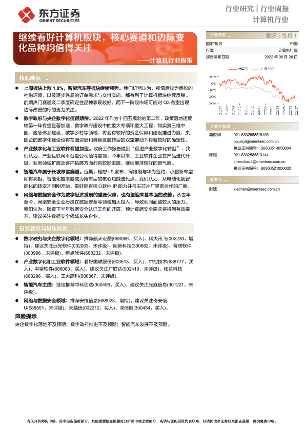 【东方证券】【20220626】20220626-东方证券-计算机行业周报:继续看好计算机板块,核心赛道和边际变化品种均值得关注-11页