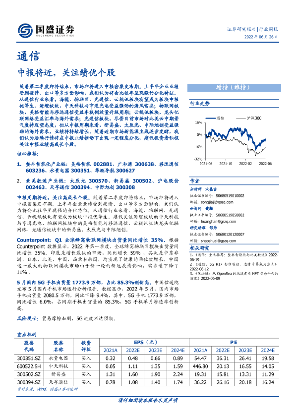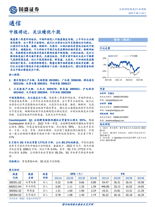 【国盛证券】【20220626】20220626-国盛证券-通信行业周报:中报将近,关注绩优个股-13页