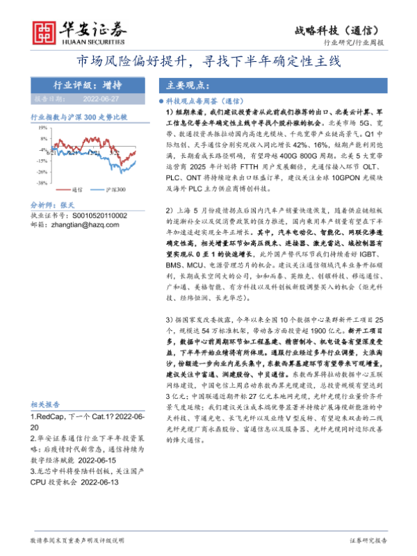 【华安证券】【20220627】20220627-华安证券-战略科技(通信)行业周报:市场风险偏好提升,寻找下半年确定性主线-13页