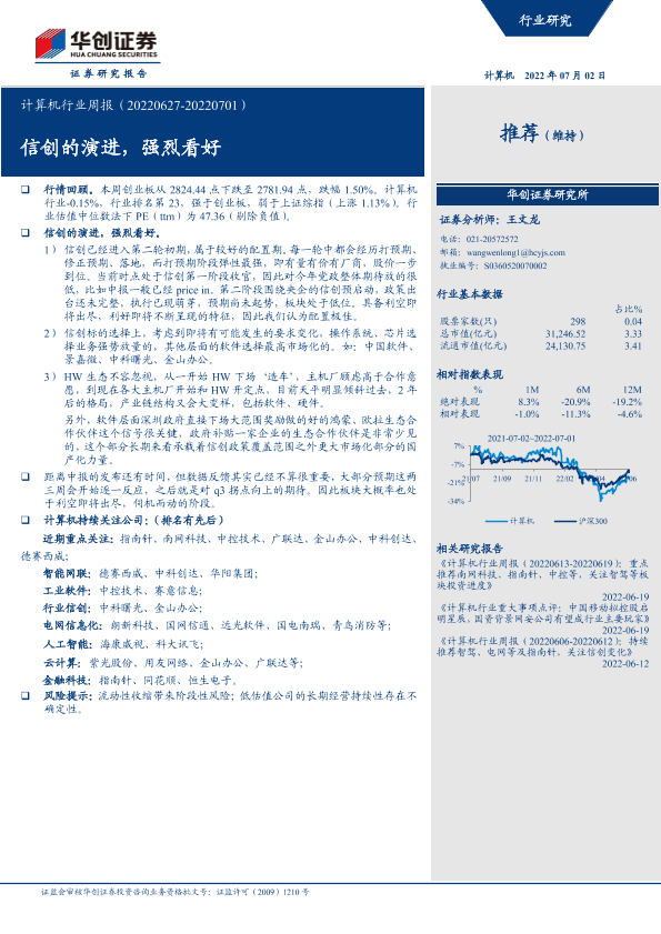 【华创证券】【20220702】计算机行业周报:信创的演进,强烈看好-4页