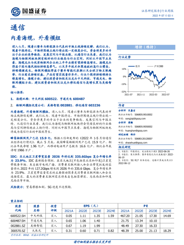 【国盛证券】【20220703】20220703-国盛证券-通信行业周报:内看海缆,外看模组-12页