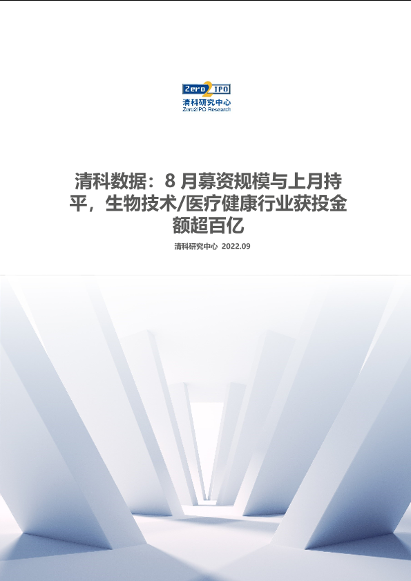 【清科研究中心】【20220916】清科数据:8月募资规模与上月持平,生物技术_医疗健康行业获投金额超百亿-11页