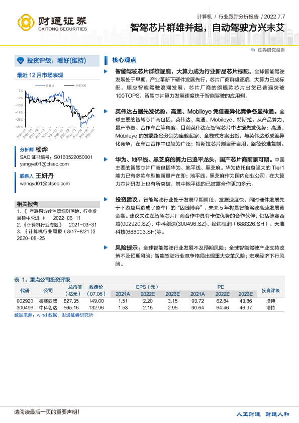【财通证券】【20220707】计算机行业跟踪分析报告:智驾芯片群雄并起,自动驾驶方兴未艾-28页