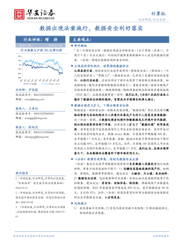 【华安证券】【20220708】计算机行业点评:数据出境法案施行,数据安全利好落实-2页
