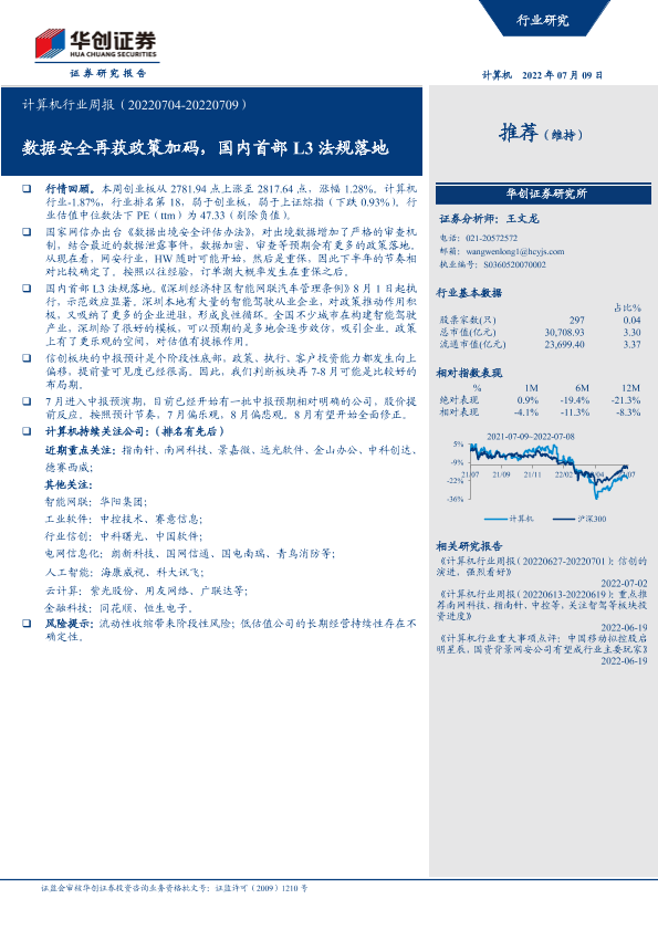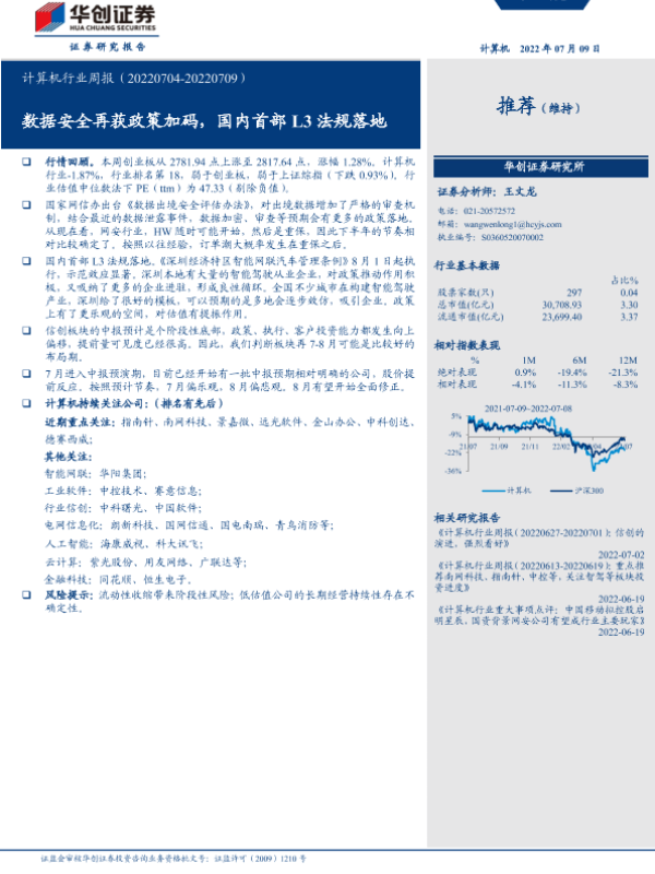 【华创证券】【20220709】20220709-华创证券-计算机行业周报:数据安全再获政策加码,国内首部L3法规落地-4页