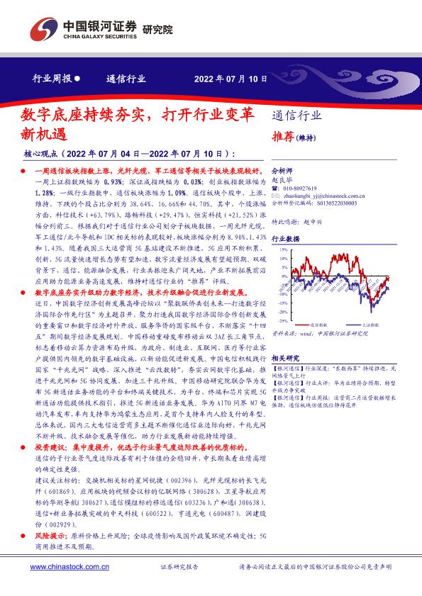 【银河证券】【20220710】20220710-中国银河-通信行业行业周报:数字底座持续夯实,打开行业变革新机遇-21页
