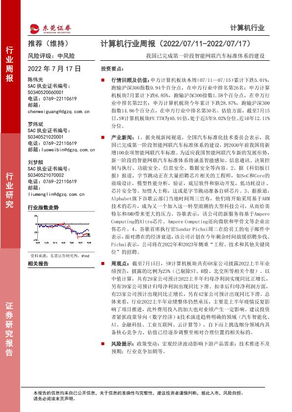 【东莞证券】【20220717】20220717-东莞证券-计算机行业周报:我国已完成第一阶段智能网联汽车标准体系的建设-8页
