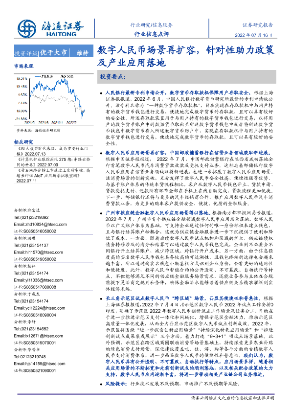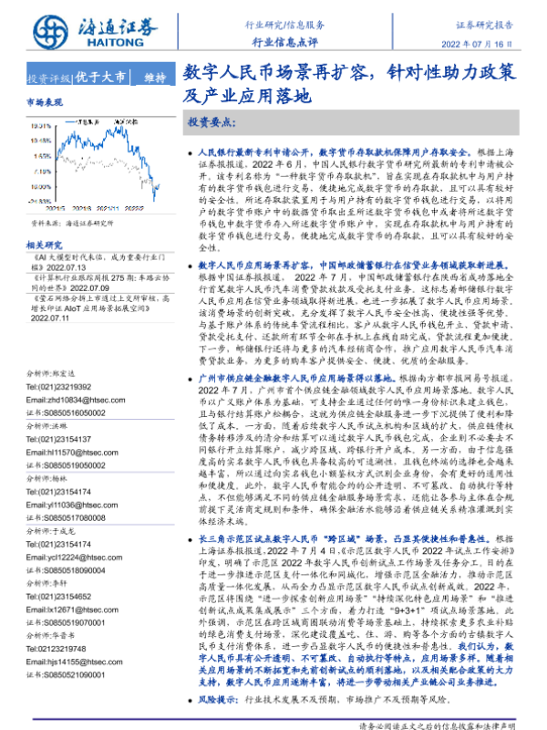 【海通证券】【20220716】信息服务行业信息点评:数字人民币场景再扩容,针对性助力政策及产业应用落地-2页