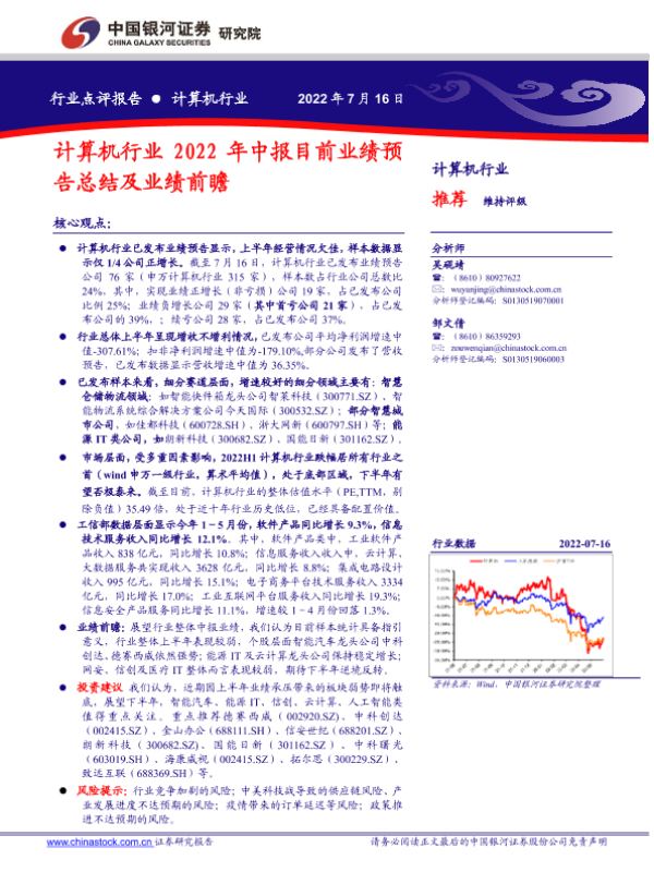 【银河证券】【20220716】计算机行业2022年中报目前业绩预告总结及业绩前瞻-5页