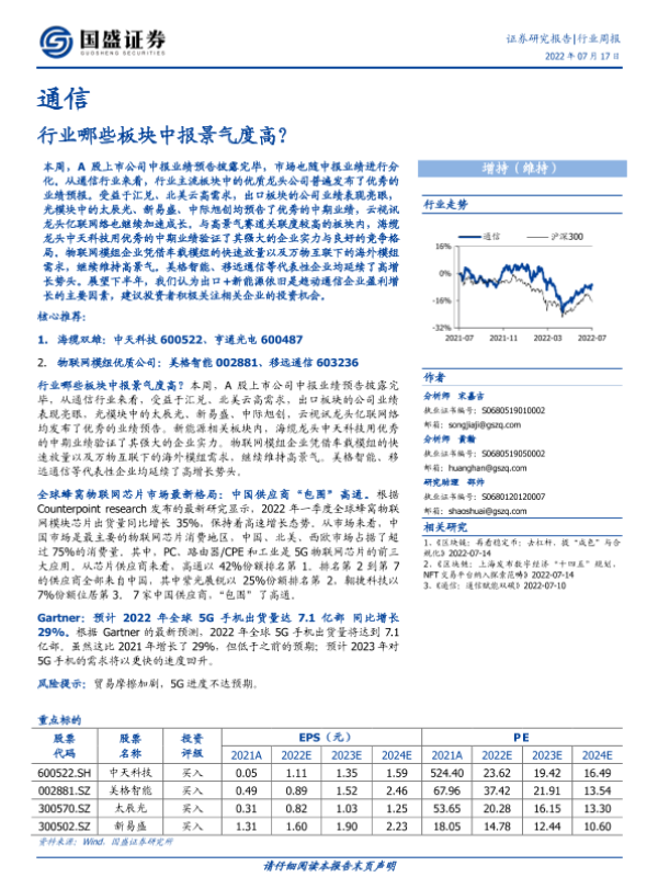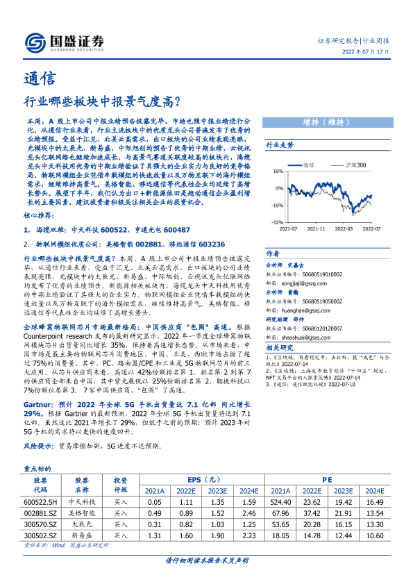 【国盛证券】【20220717】通信行业周报:行业哪些板块中报景气度高?-12页