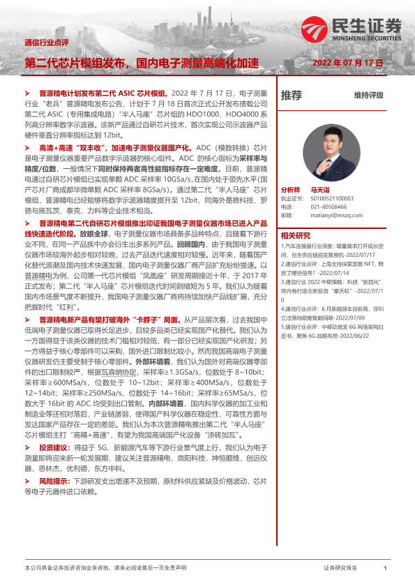 【民生证券】【20220717】通信行业点评:第二代芯片模组发布,国内电子测量高端化加速-2页