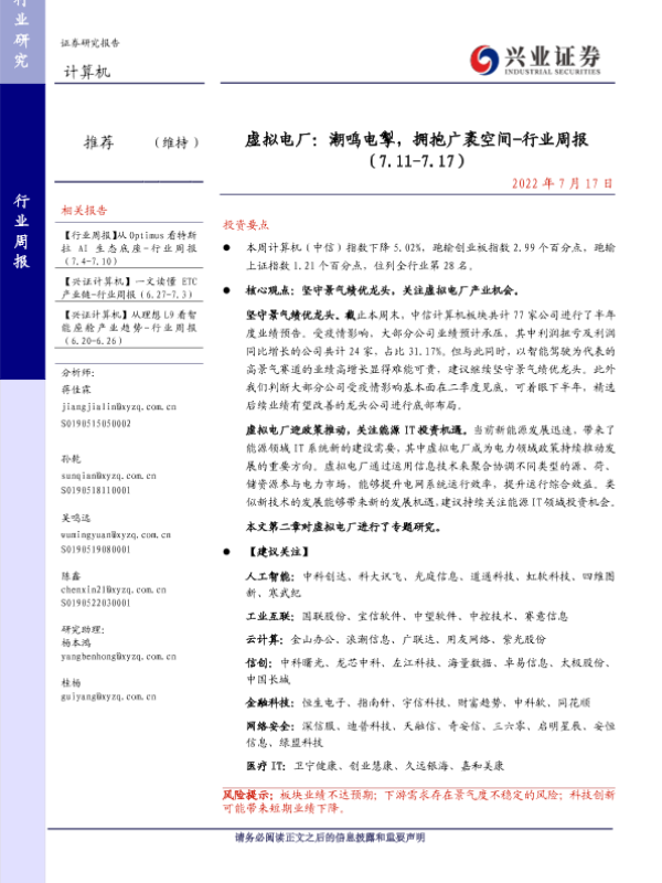 【兴业证券】【20220717】虚拟电厂:潮鸣电掣,拥抱广袤空间-行业周报 (7.11-7.17)-36页