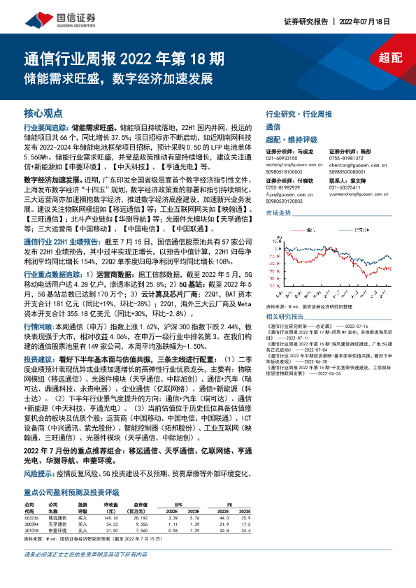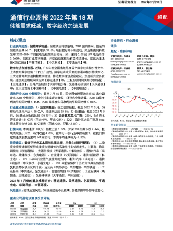 【国信证券】【20220718】通信行业周报2022年第18期:储能需求旺盛,数字经济加速发展-30页