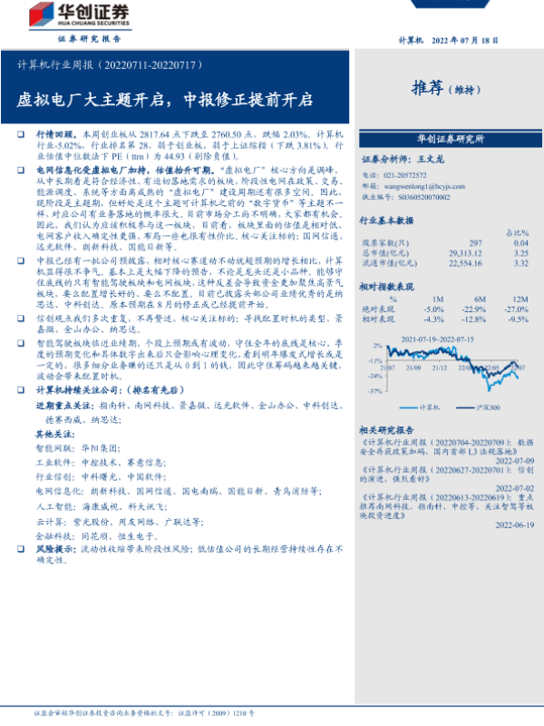 【华创证券】【20220718】20220718-华创证券-计算机行业周报:虚拟电厂大主题开启,中报修正提前开启-4页