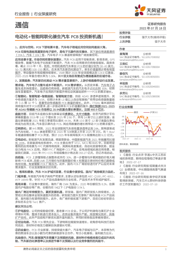 【天风证券】【20220718】电动化+智能网联化催生汽车PCB投资新机遇!-49页