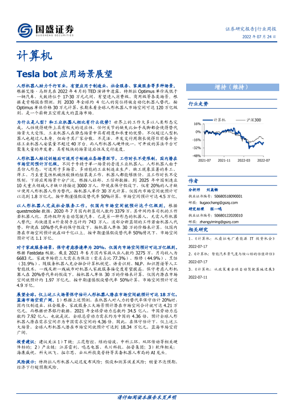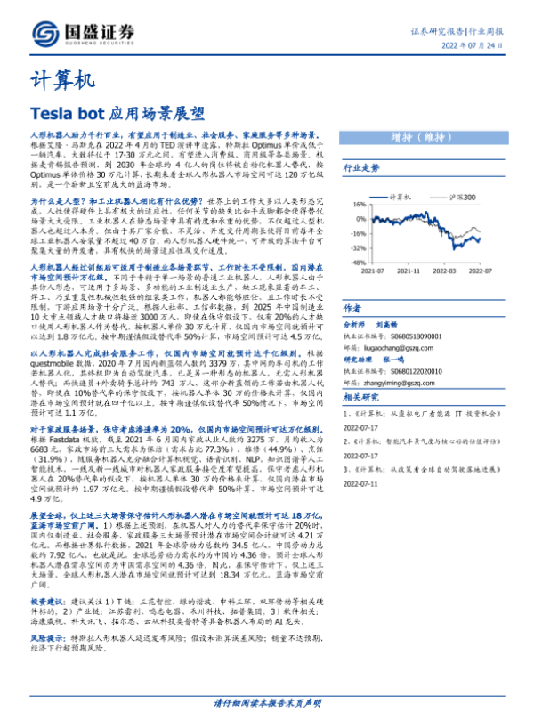 【国盛证券】【20220724】计算机行业周报:Tesla bot应用场景展望-14页