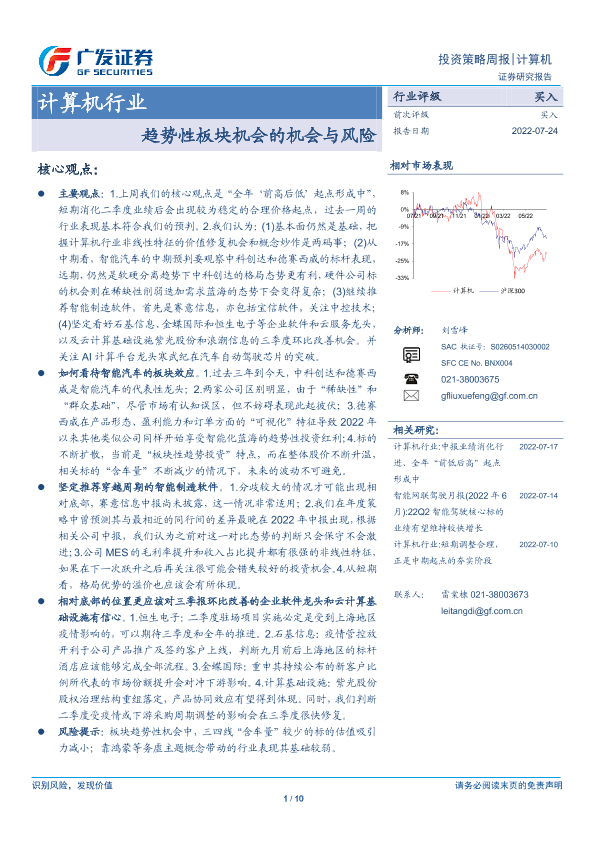 【广发证券】【20220724】20220724-广发证券-计算机行业投资策略周报:趋势性板块机会的机会与风险-10页