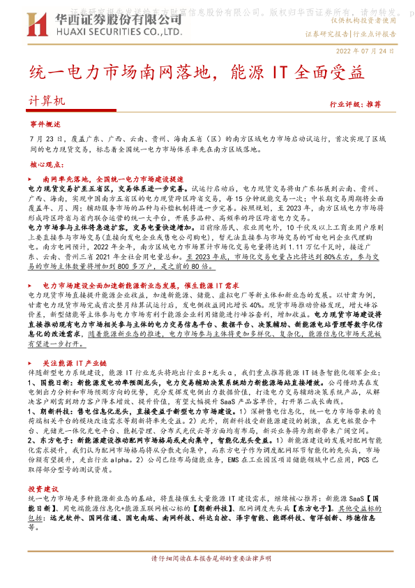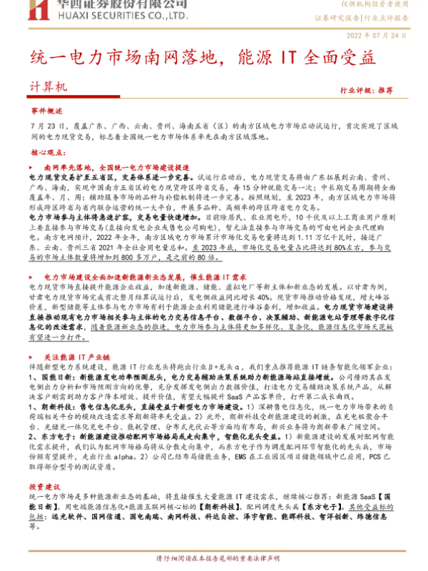 【华西证券】【20220724】统一电力市场南网落地,能源IT全面受益-4页